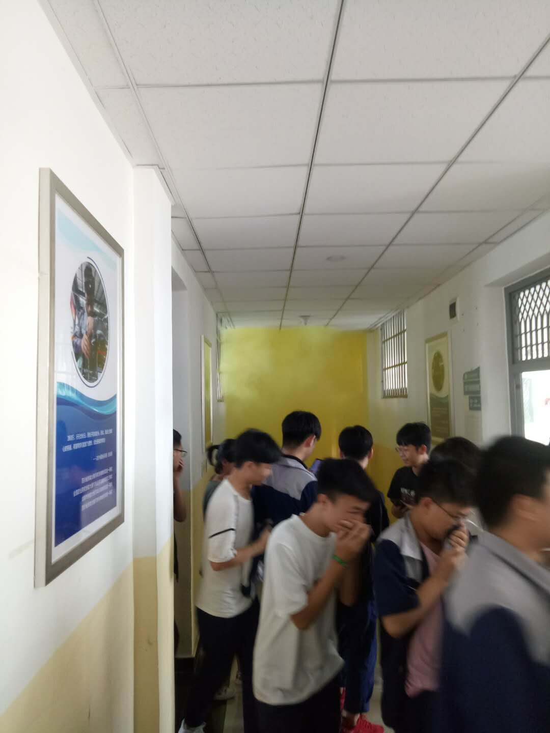 随着应急广播发出的疏散指令,同学们在老师们的带领下,手捂口鼻,按照疏散引导员的指挥路径,分别从教学楼、实训楼迅速、安全、有序地撤离到安全的空地区域。整个疏散过程耗时3分10秒,近2000名师生全部疏散完毕。到达安全区域,随即清点人数。整个过程师生临危不乱、紧张有序,收到了预期的效果。
