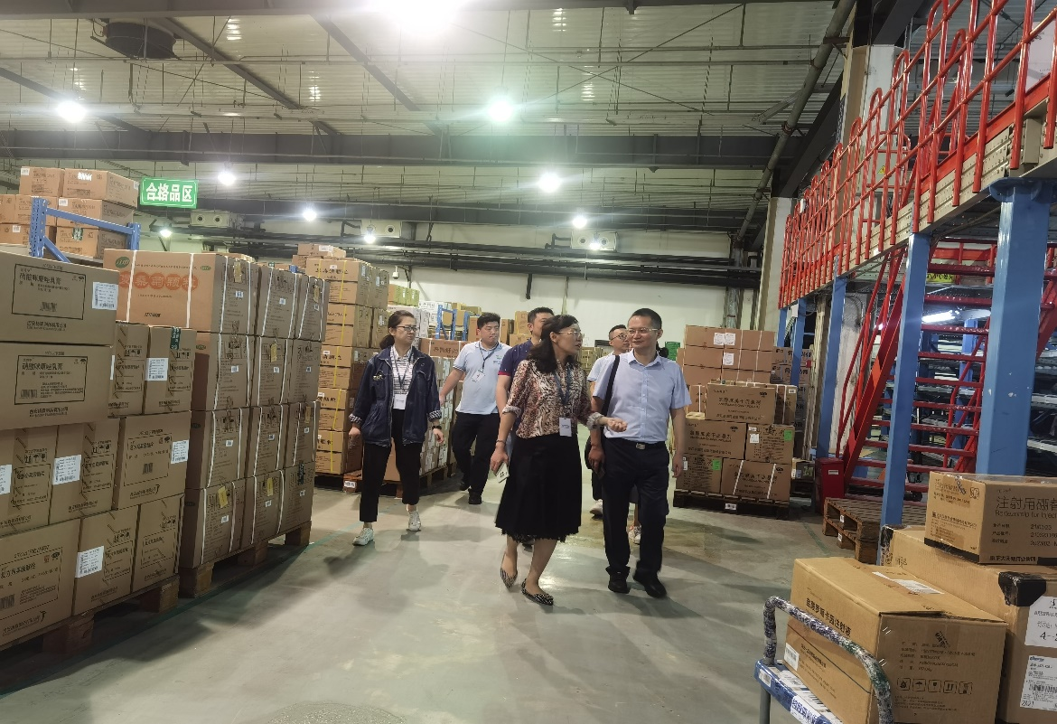 在会议室,业务部陈春艳经理从公司发展历史、经营理念、组织架构、信息化体系、服务产品、医药冷链等方面介绍了公司的基本情况。现场参观中,公司各部门负责人分别介绍了冷库、特殊药品库、器械专用库、药品分拣设备的作业流程,刘校长一行详细了解了各库布局和生产设备、不同仓库中储存商品的种类、温湿度监控等内容。