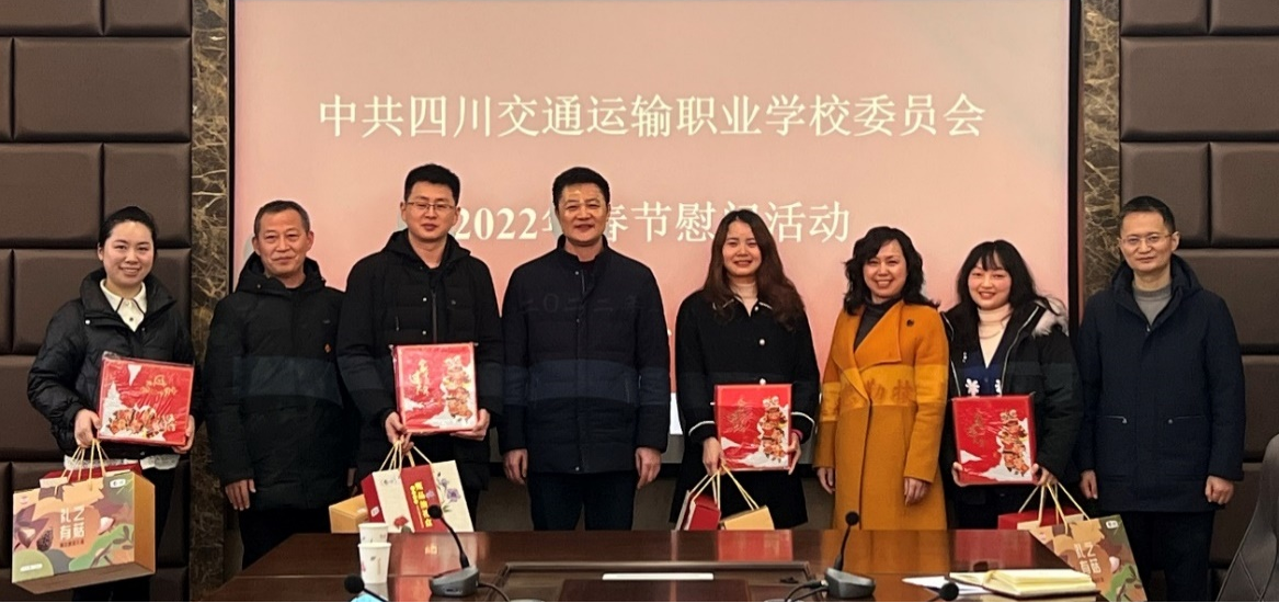 春节将至,年味儿渐浓。1月18日,学校党委书记、校长曾祥亮率队对2021年的先进模范人物、工匠和技能人才、困难职工、扶贫干部等职工代表在温江校区开展了新春慰问活动,副校长、纪委书记、工会主席周萍,党委副书记、副校长龚文安,副校长刘新江,工会办公室主任任晖,学校办公室主任夏洋,组织人事科副科长(主持工作)刘晓宇等校领导和部门领导陪同参加慰问。