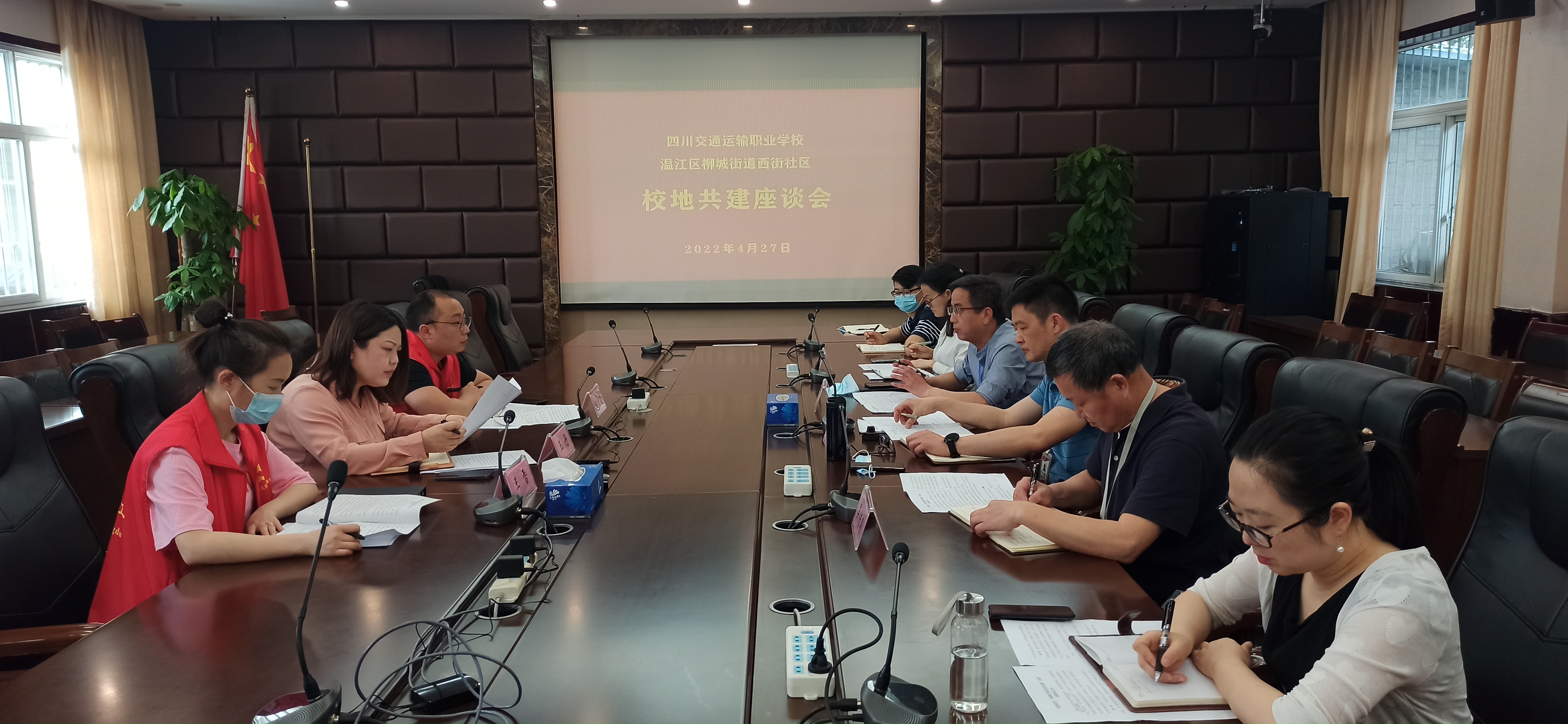 2022年4月27日,温江区柳城街道西街社区书记王丹一行到我校洽谈校地共建共育事宜,学校党委书记、校长曾祥亮,党委副书记、纪委书记、副校长杨鹏辉,学生科、交通运输与信息工程系相关领导、教师出席此次座谈会。