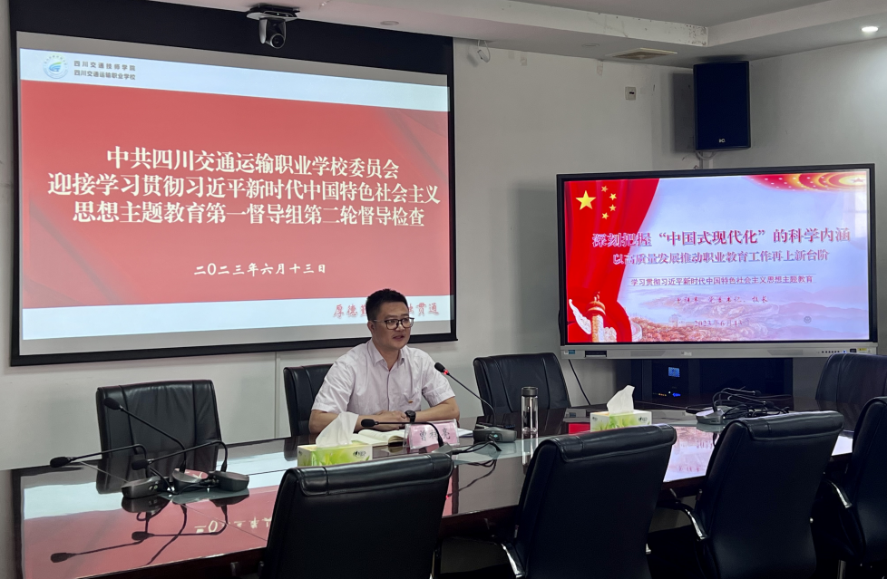 6月13日,校党委书记、校长曾祥亮同志以《深刻把握“中国式现代化”的科学内涵以高质量发展推动职业教育工作再上新台阶》为题讲授专题党课。厅学习贯彻习近平新时代中国特色社会主义思想主题教育第一督导组成员到场指导。