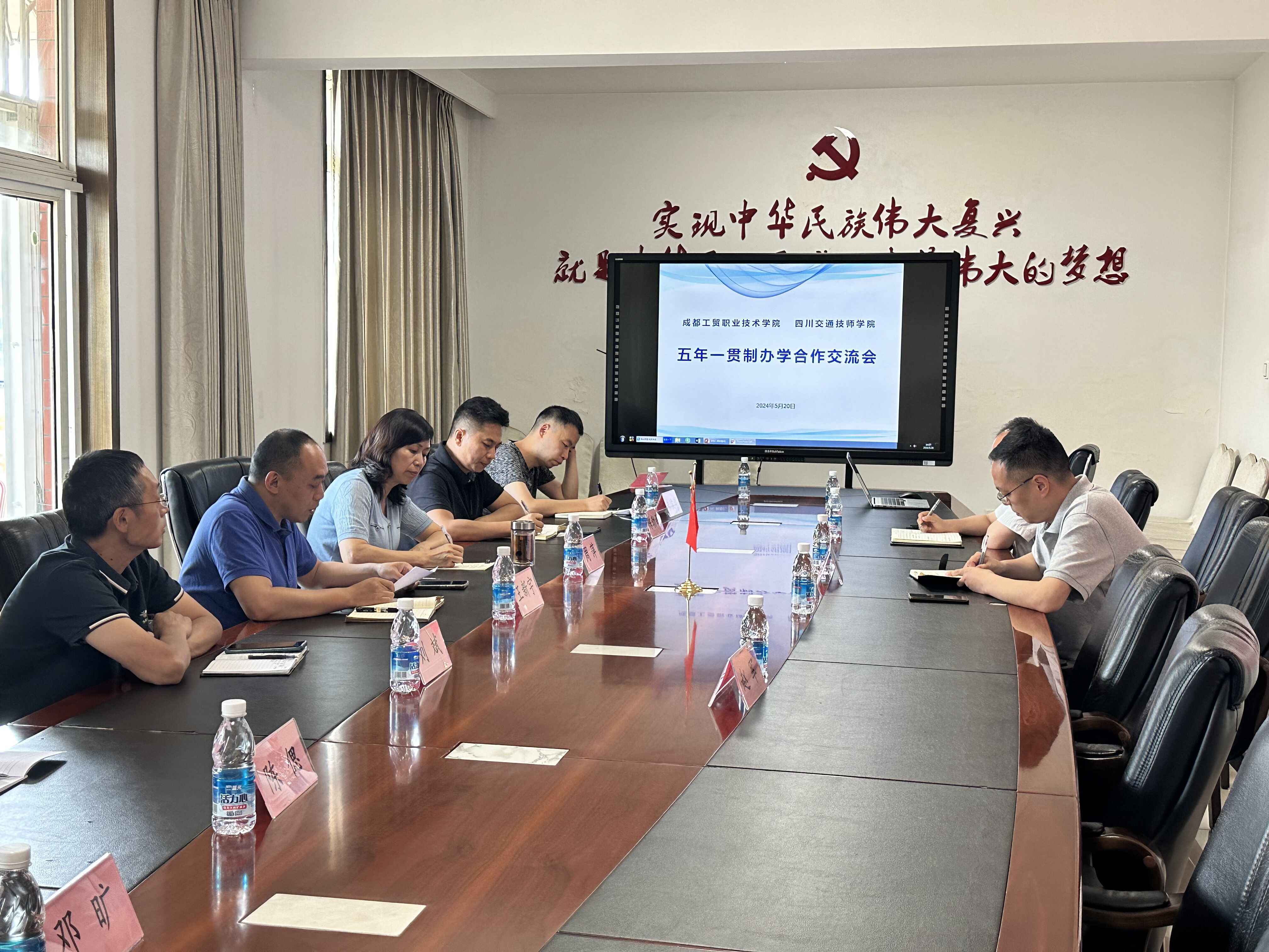 5月20日,学校党委委员、副校长、工会主席周萍带队赴成都工贸职业技术学院与铁道工程学院刘强副院长就两校开展五年一贯制高职合作相关工作进行了沟通交流。
