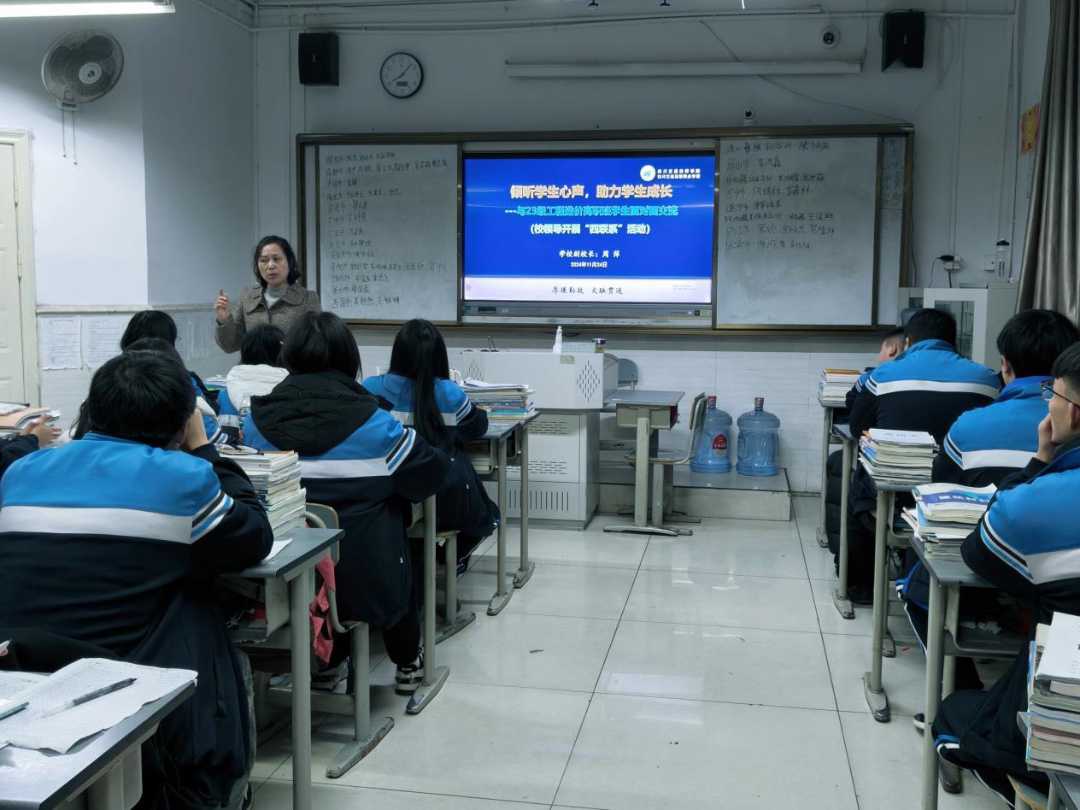 近日,学校副校长周萍走访对接2023级工程造价高职2班深入开展校领导班子“四联系”活动,参加该班班会,与同学们亲切交谈。