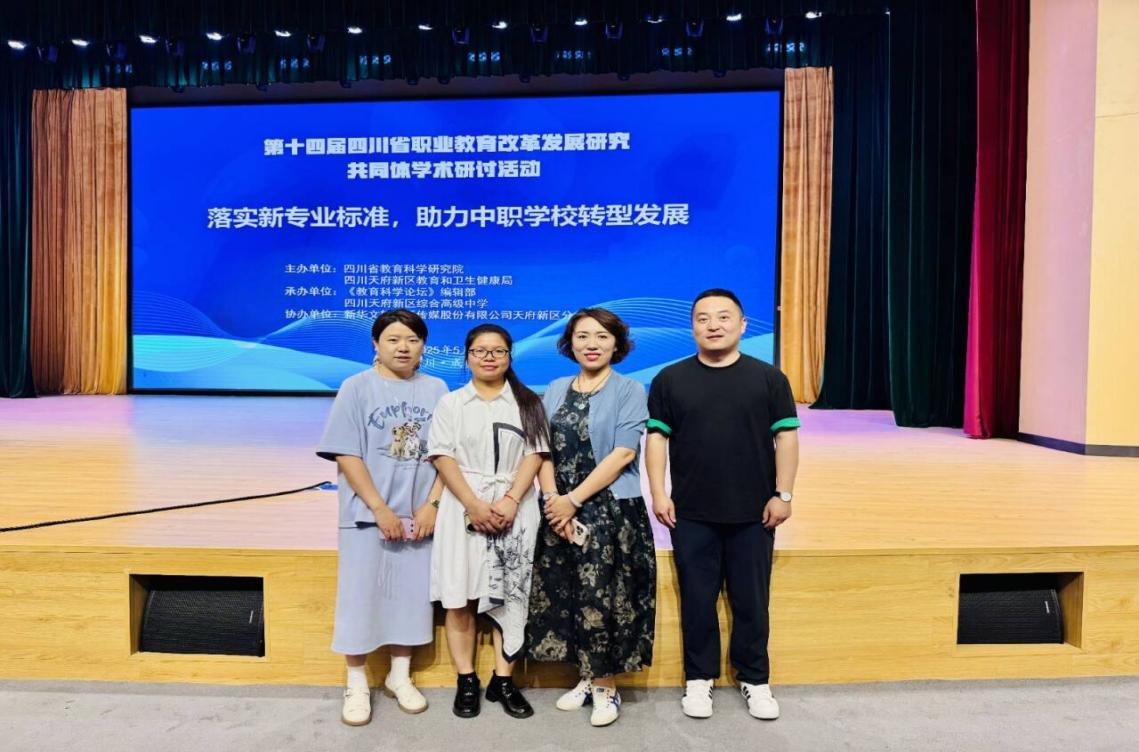 为深入贯彻落实职业教育新政策、新要求,把握职业教育发展新趋势,我校一行四人受邀参加第十四届四川省职业教育改革发展研究共同体学术研讨活动。此次活动以“落实新专业标准,助力中职学校转型发展”为主题,吸引了200余位来自省内外的职教领域专家、学者及一线教师齐聚一堂,共同探讨职业教育改革创新的前沿课题与实践路径。