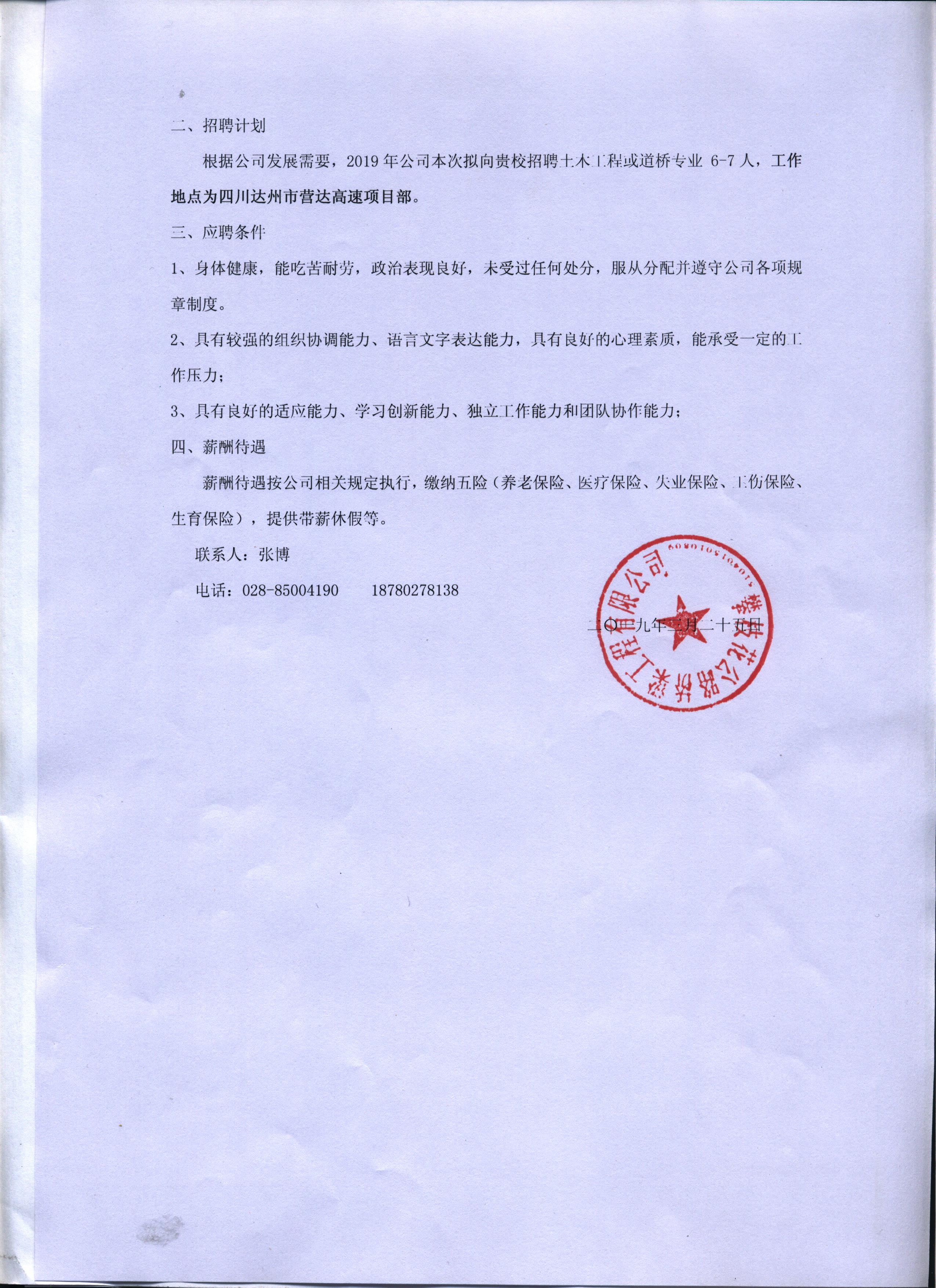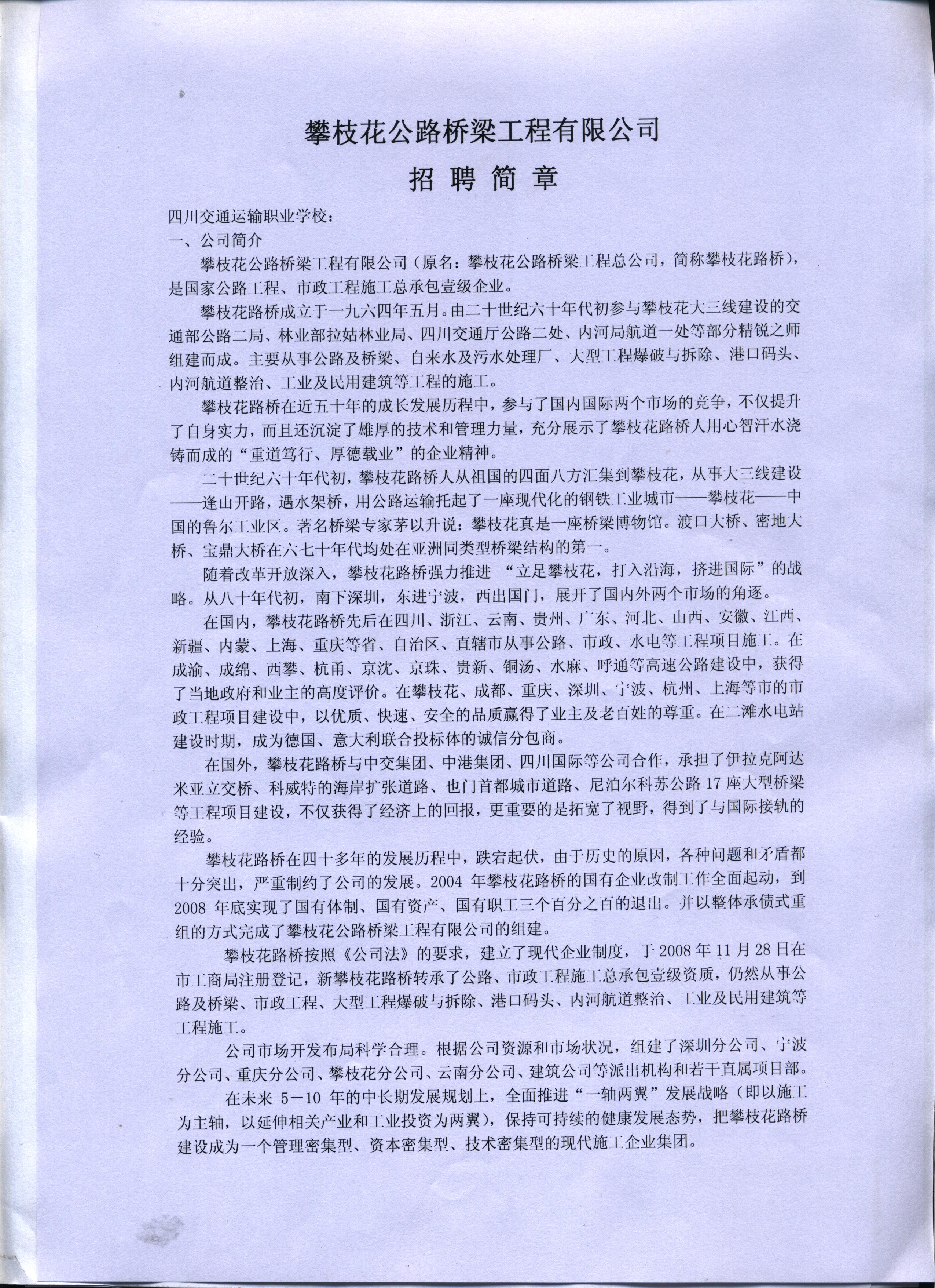 攀枝花公路桥梁工程有限公司招聘信息-四川交通运输职业学校-官方网站