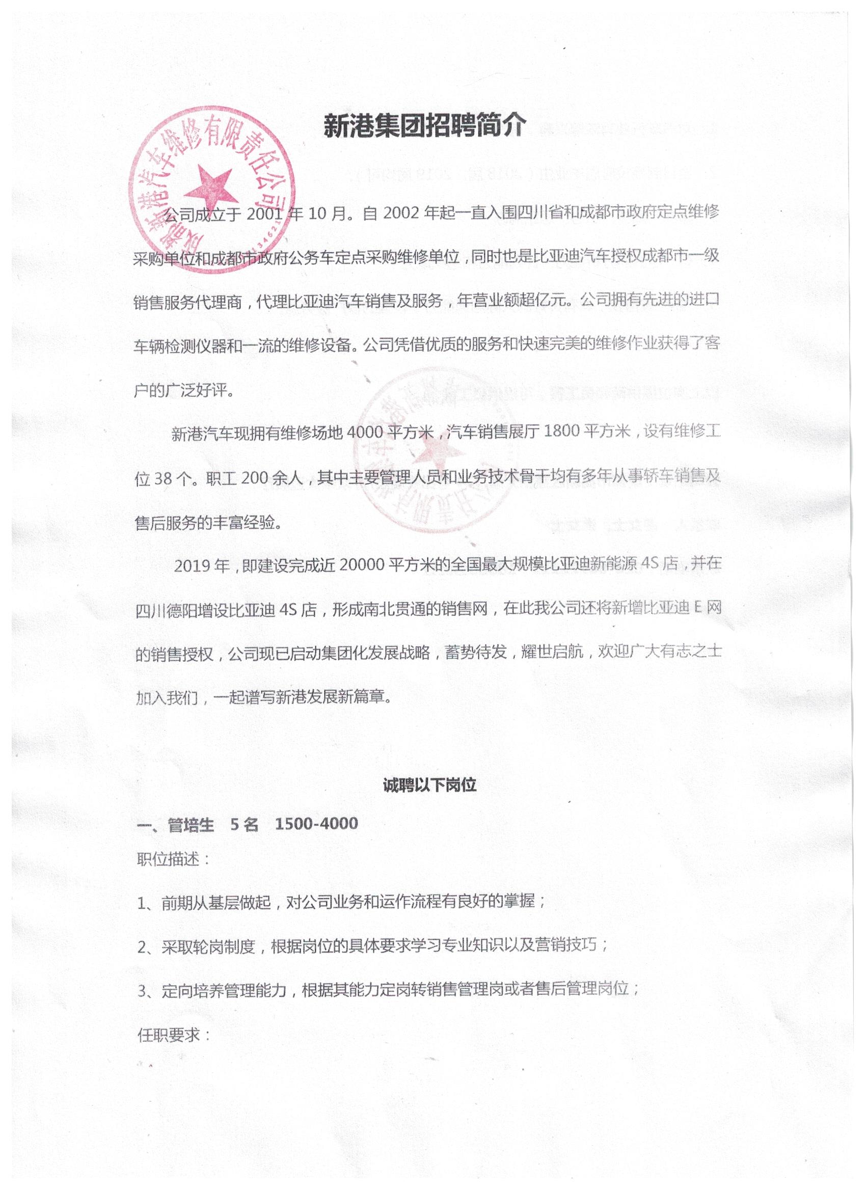 新港集团招聘简章 -四川交通运输职业学校-官方网站
