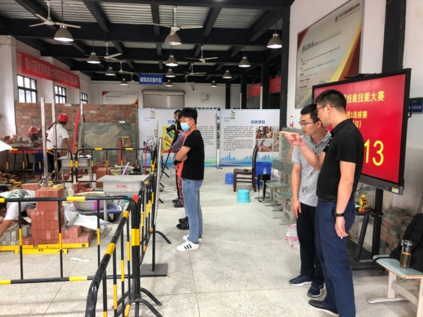 8月31日,第46届世界技能大赛砌筑赛项四川省4进1选拔赛在我院建筑工程系砌筑项目实训基地进行,学院党委书记曾祥亮到建筑工程系实训室观摩了比赛过程,并详细了解了比赛情况。