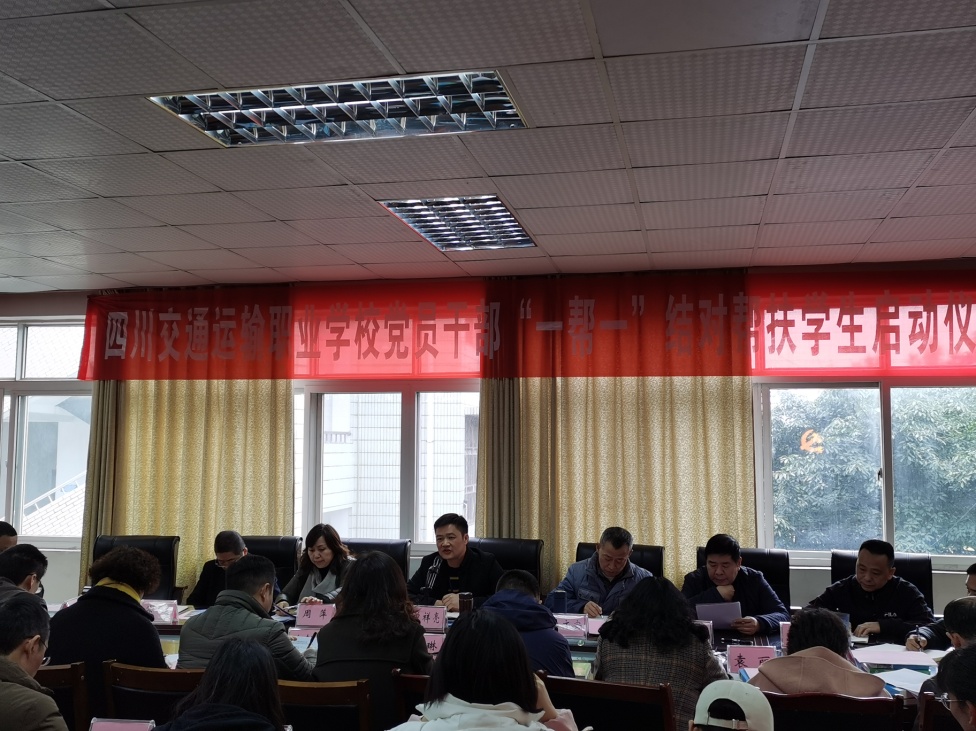 11月26日,学校领导班子成员、部分中层干部和学校29名贫困学生在综合楼二楼会议室开展了党员干部“一帮一”结对帮扶启动仪式。