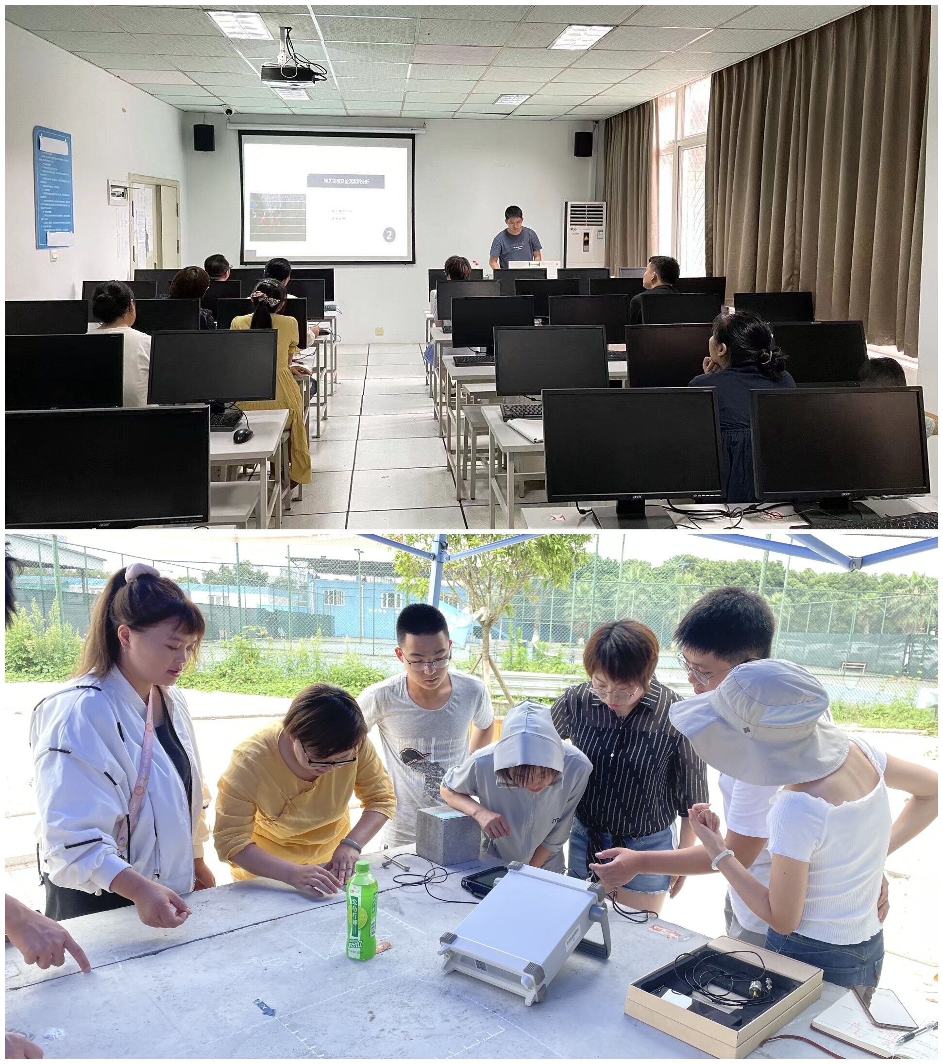 7月1日-7月2日,建筑工程系组织全体教师在红牌楼校区和四川交通职业技术学院进行无损检测培训。邀请四川升拓检测技术股份有限公司冯源老师对大家进行理论讲解和实操培训。