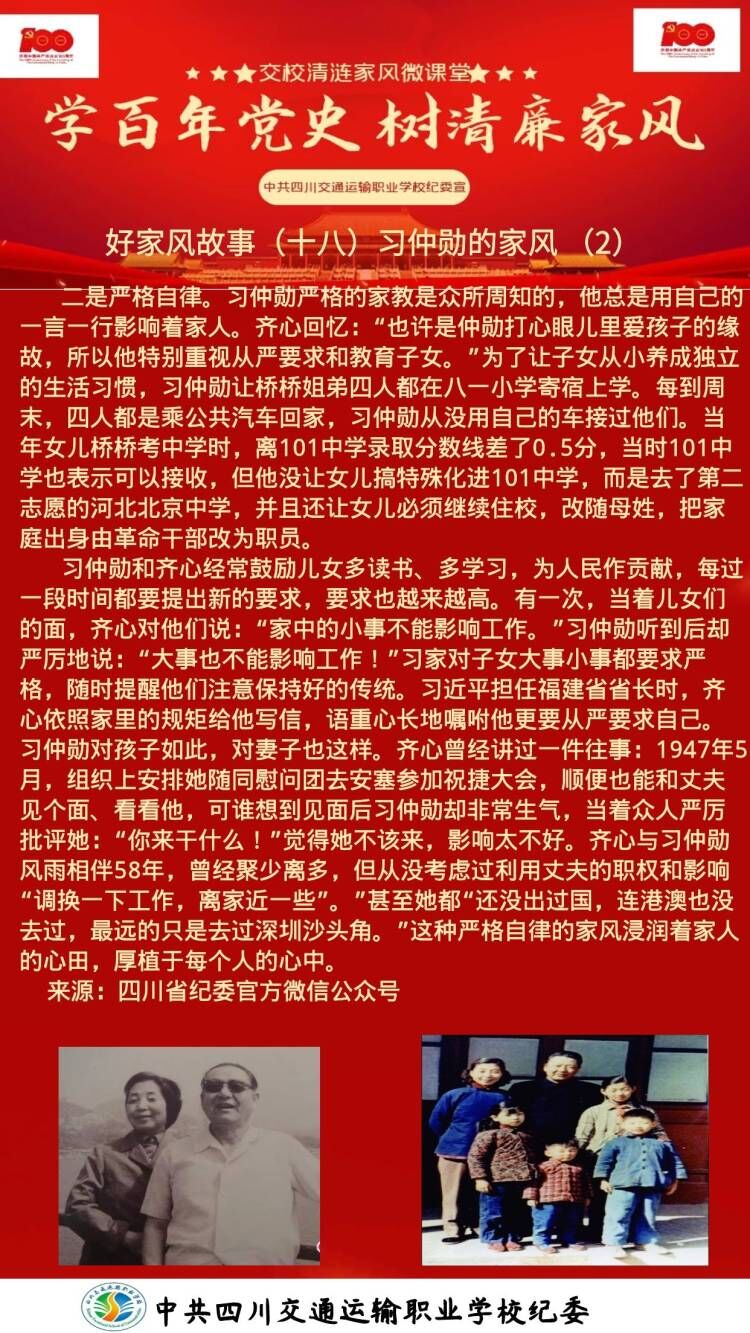 交校清涟家风微课堂(十八)-四川交通运输职业学校-官方网站