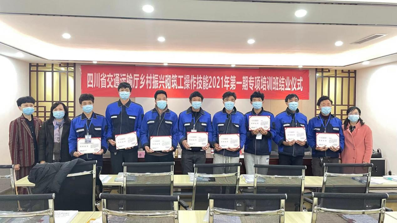 2021年11月9日,四川省交通运输厅乡村振兴第一期砌筑工培训班结业仪式在我校红牌楼校区举行。学校副校长、纪委书记、工会主席周萍,建筑工程系主任张秀娟,继续教育部幸艳老师参加了结业仪式。