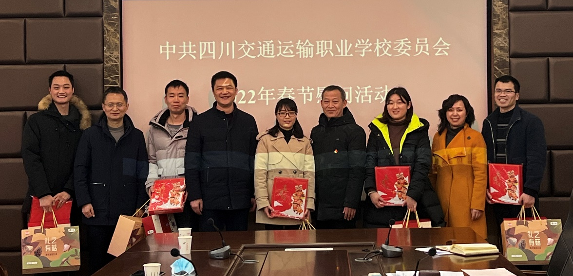 春节将至,年味儿渐浓。1月18日,学校党委书记、校长曾祥亮率队对2021年的先进模范人物、工匠和技能人才、困难职工、扶贫干部等职工代表在温江校区开展了新春慰问活动,副校长、纪委书记、工会主席周萍,党委副书记、副校长龚文安,副校长刘新江,工会办公室主任任晖,学校办公室主任夏洋,组织人事科副科长(主持工作)刘晓宇等校领导和部门领导陪同参加慰问。