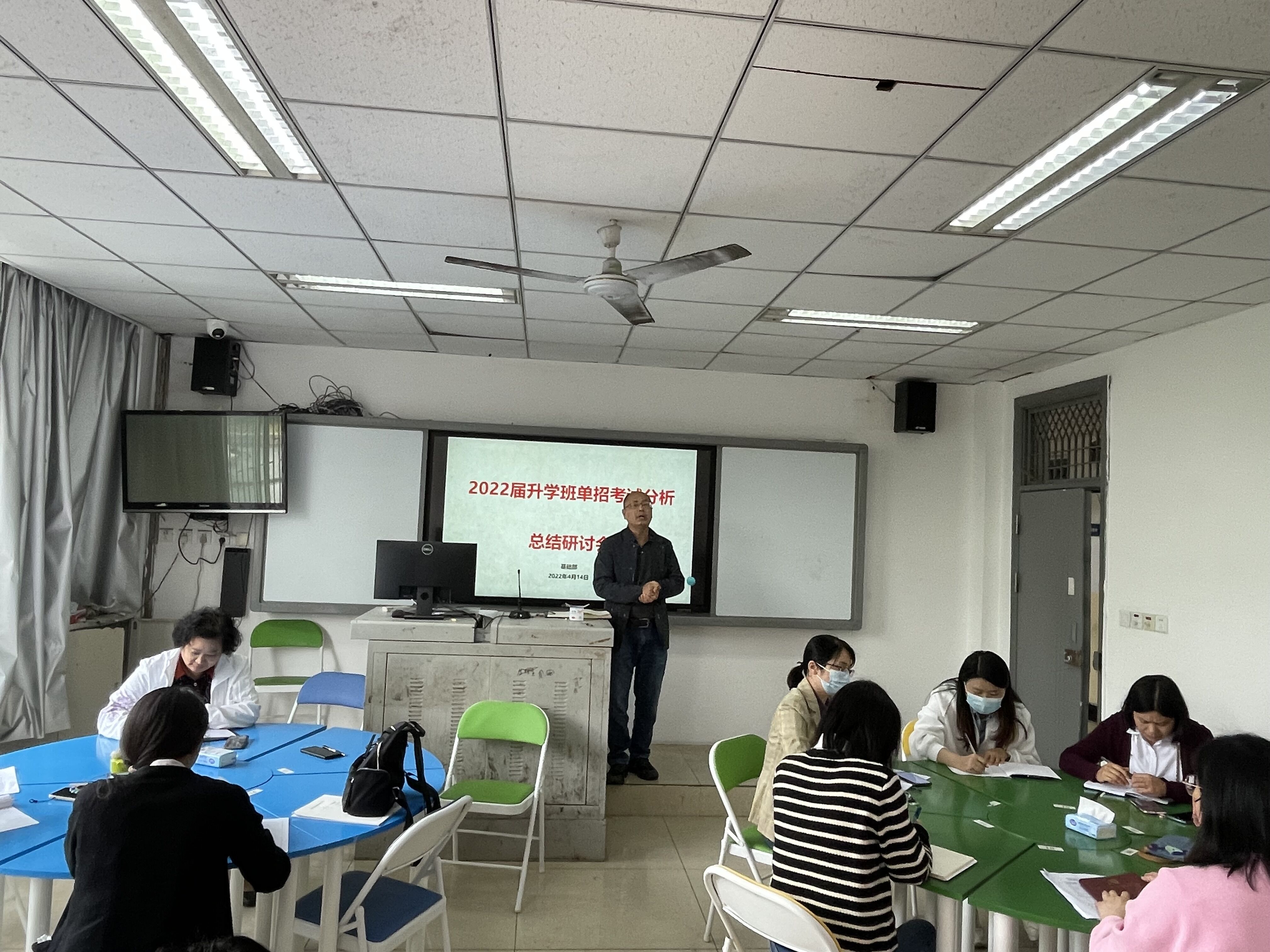 4月14日下午,基础部在实训楼206教室召开2022届升学班单招考试分析总结研讨会。基础部党支部书记柏令勇主持会议,基础部全体老师参加会议。