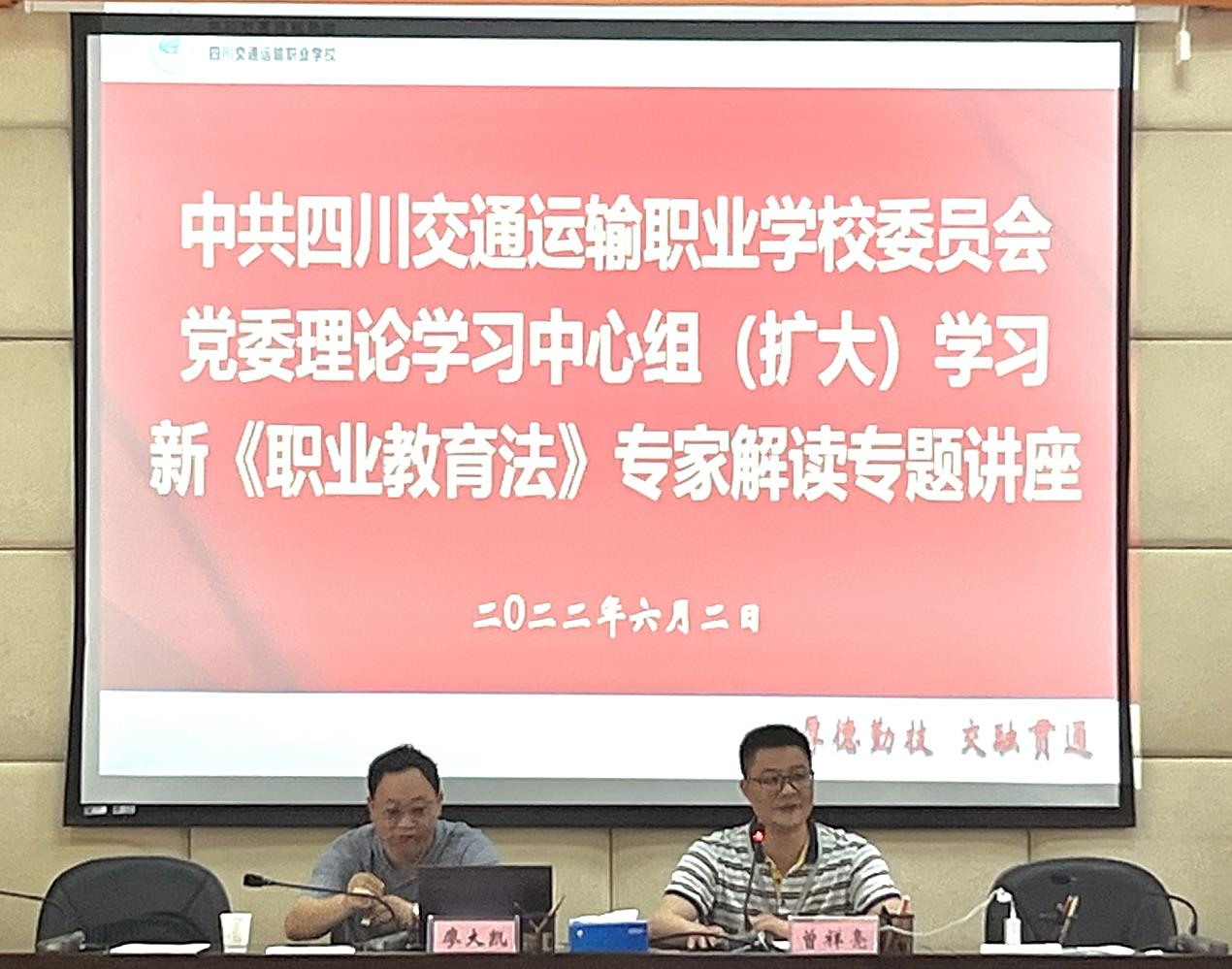 6月2日,学校党委召开2022年第五次理论学习中心组(扩大)学习,邀请四川省教育科学研究院职教所所长廖大凯同志专题解读新修订的《中华人民共和国职业教育法》。学校党委书记、校长曾祥亮同志主持,中层及以上干部、全体青年理论学习小组成员参加学习。