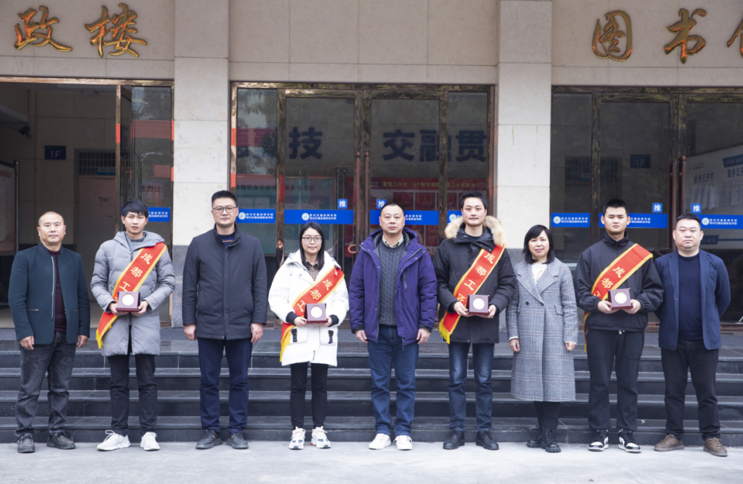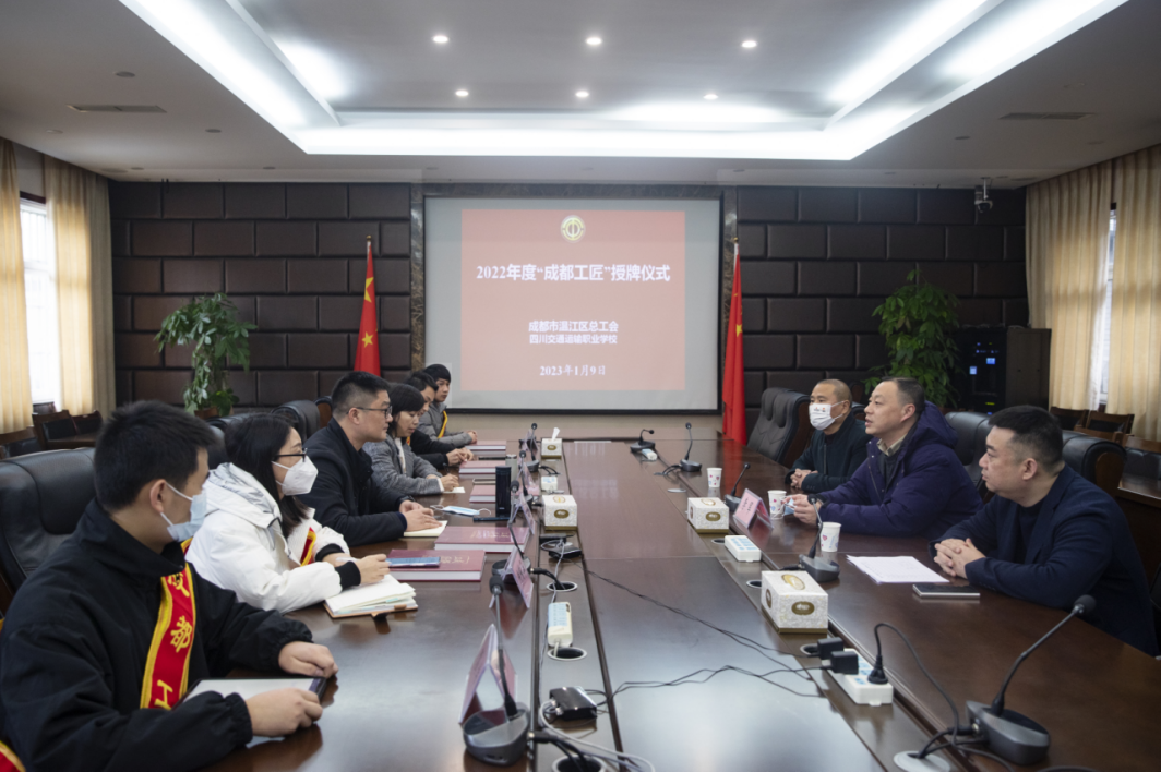 1月9日下午,成都市温江区总工会党组书记、常务副主席李军一行到我校,为学校获得2022年度“成都工匠”称号的五名教师授牌,学校党委书记、校长曾祥亮,副校长、工会主席周萍出席会议,何陶华、冯太刚、徐晓明、贺希等工匠参加了授牌仪式。
