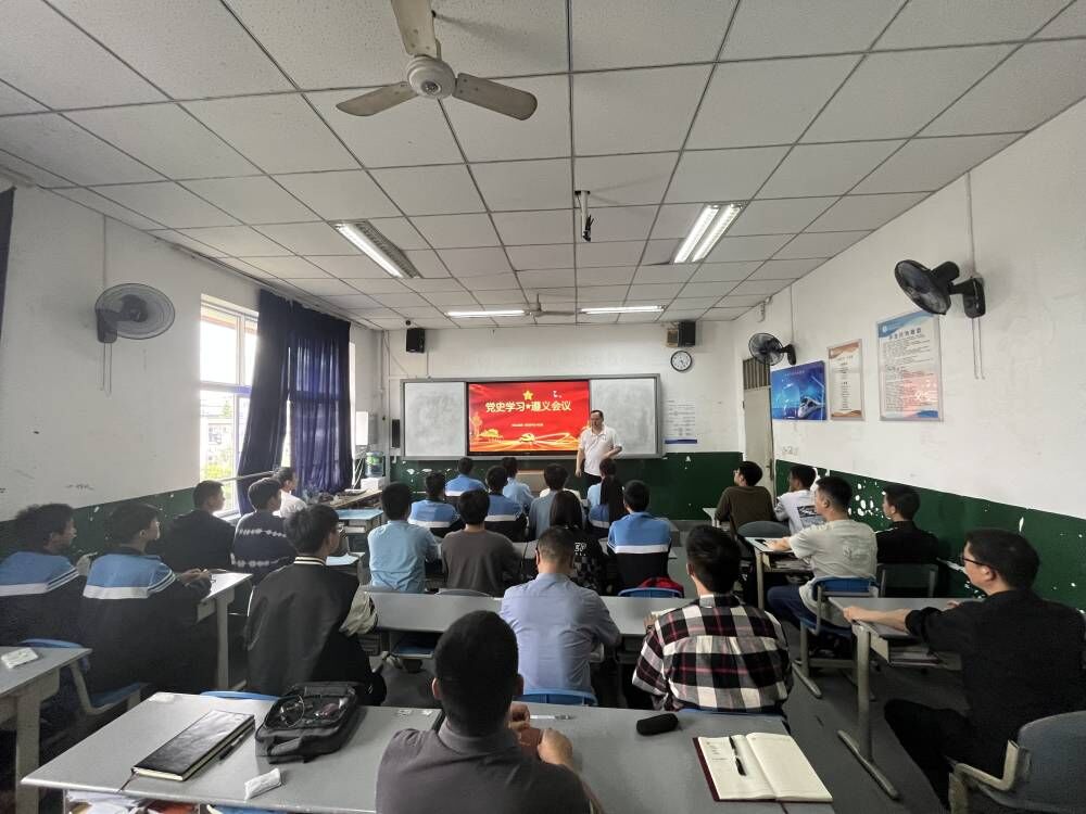 5月24日,机电工程系党支部书记申立静同志在教学楼1509教室为全系党员及学生代表讲了一堂《党史学习——遵义会议》的专题党课。