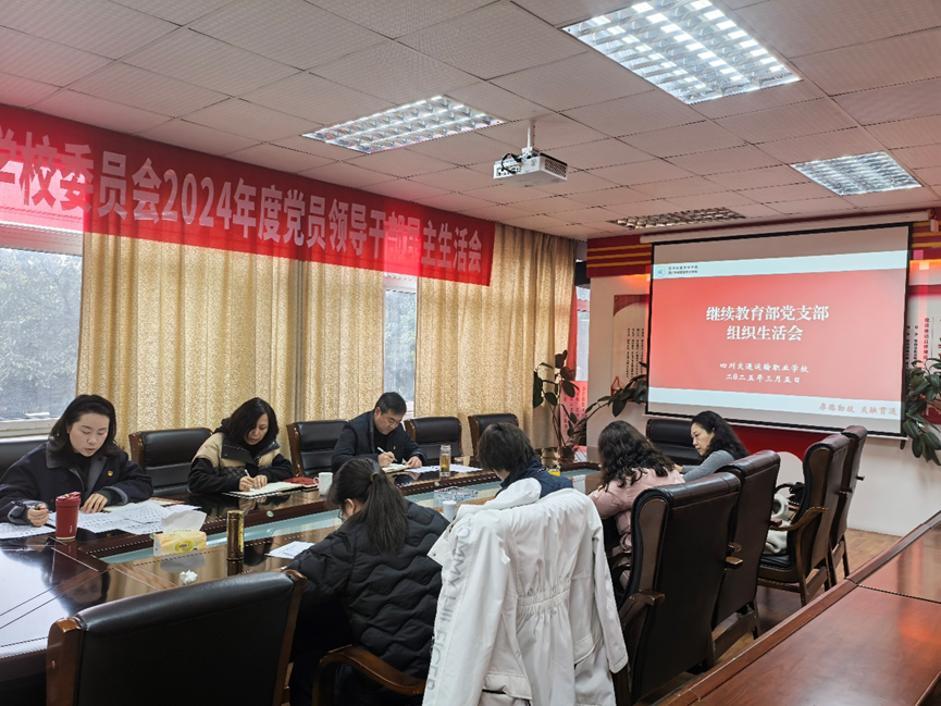 3月5日上午,继续教育部党支部在综合楼二楼党员活动室召开2024年度组织生活会暨民主评议党员会议。党委副书记、校长付传龙同志以普通党员身份参会,学校党委委员、副校长、工会主席周萍同志到会指导。