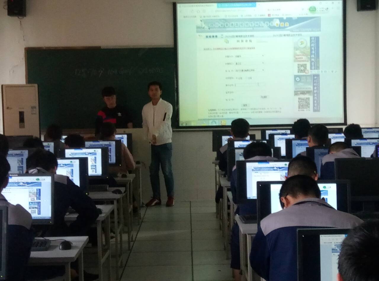 为做好2018年升学班对口招生考试工作,根据四川省高等教育招生考试委员会精神文件要求,11月1日—3日招生就业办公室老师组织升学班学生进行报名培训,强调注意事项,并分校区在学校机房现场指导学生进行了基本信息的网上填报工作,做到了真实、准确、完整采集有关报名信息,为我校学生参加2018年的普通高考做好了前期工作。