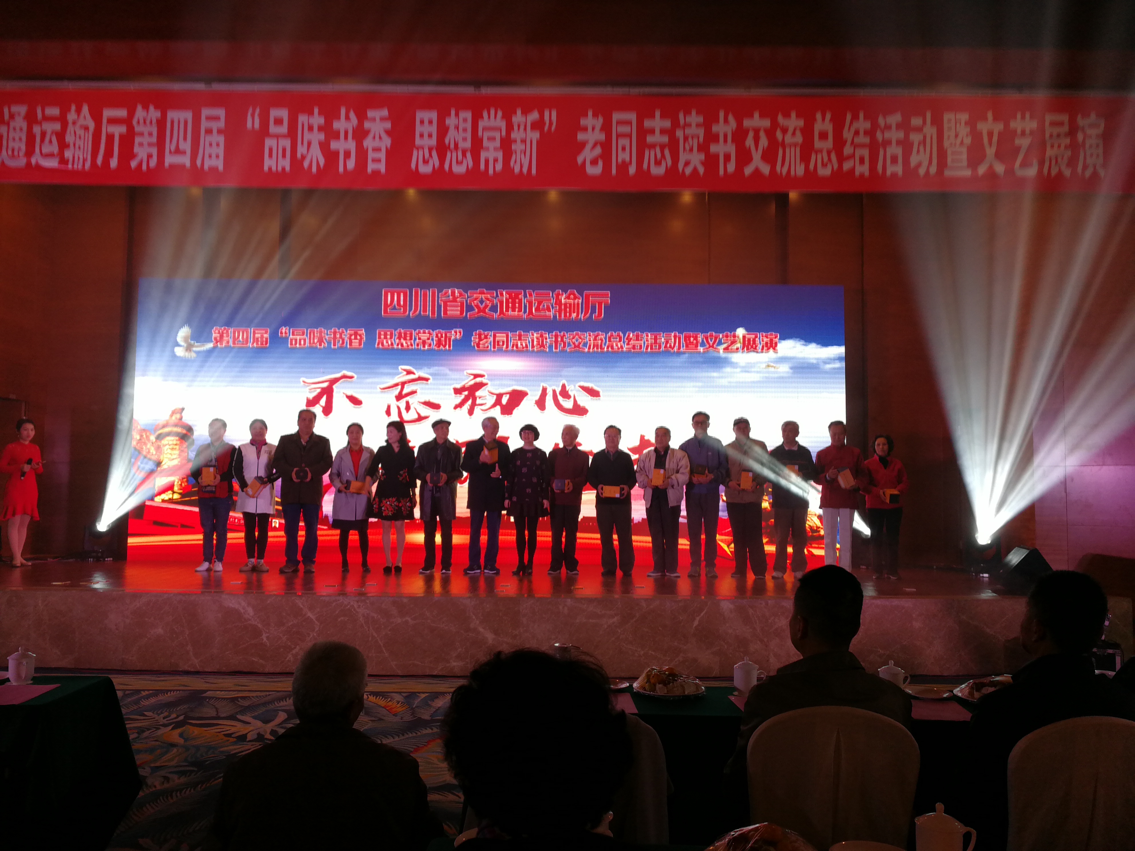 2017年11月6日至9日我校老同志参加省交通运输厅在绵阳市绵州温泉酒店举行的“不忘初心 永跟党走”老同志读书交流总结暨文艺节目展演活动。在读书总结活动中我校张家齐、康述丘、贾兆俊、陈光益、李桂美等五位老同志撰写的文章和诗歌受到表彰和奖励。在文节目展演中我校老同志王志蓉周英的双舞《天路入云端》,文玉的独唱歌曲《明月千里》得到一致好评。