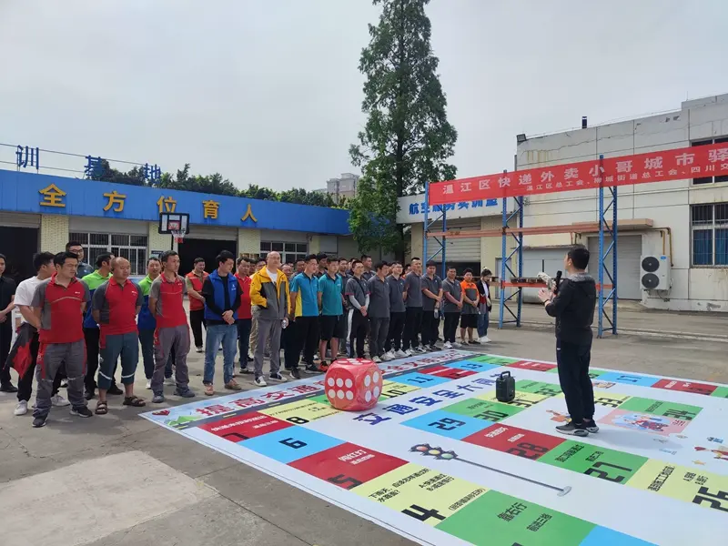 温江区快递外卖小哥城市驿站组织春季趣味运动会